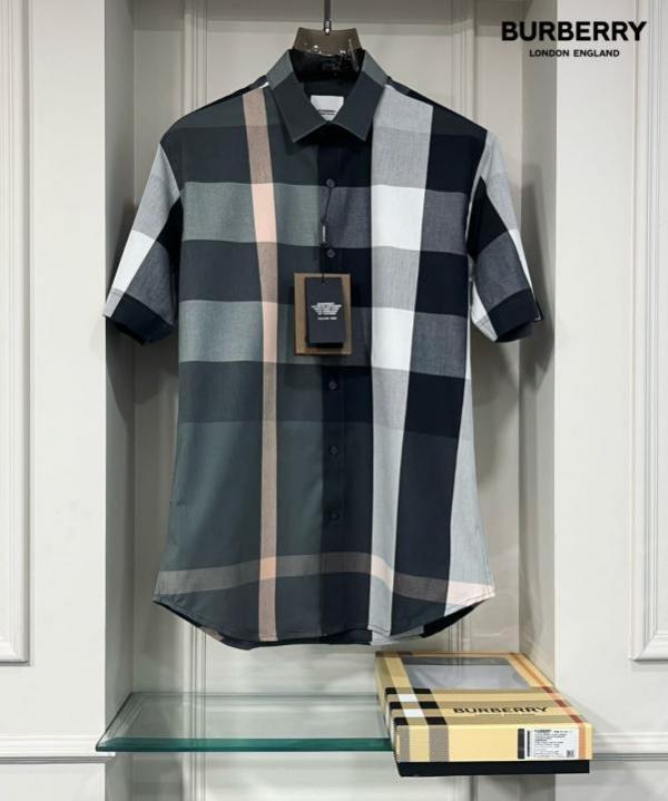 Burberr y Checks Half sleeve Store article Shirt with Original box ( Grey Green )