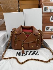 MOSCHINO BIKER JACKET BROWN LEATHER PREMIUM WITH DUST BAG
